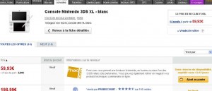 mega offre , mais avec de tres gros risques d’annulation : la console 3ds xl de nintendo qui se vend normalement autour de 190 euros, est proposée sur le site de la fnac à moins de 60 euros …