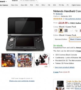 152 euros un pack regroupant la console nintendo 3ds + 3 jeux en commandant sur amazon angleterre .. Une bonne affaire quand on sait qu’en France la console seule est vendue plus de 150 euros generalement ..