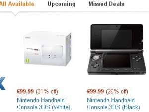 Si vous desirez offrir une console nintendo 3ds , offre interessante dans les ventes flash sur amazon angleterre : On a en effet en promo les nintendo 3ds blanches et noires à 99 pounds chacune .. En ajoutant les frais de livraison pour la France , on a un prix total en euros de 132 euros ..