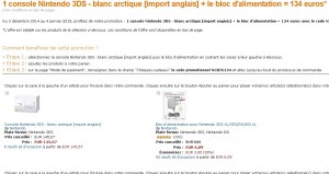 134 euros donc sur amazon l’ensemble … Il s’agit en fait d’une console nintendo 3ds en version import anglais …
