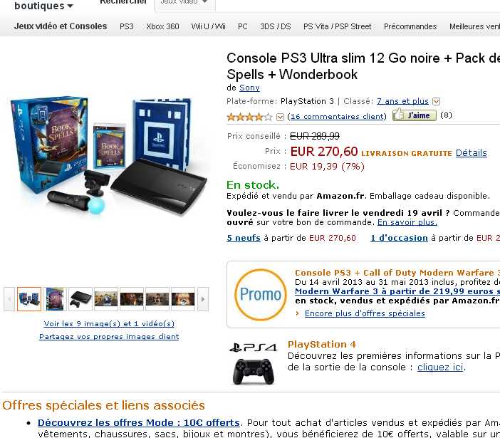 Console PS3 12Go Book of spells à 179 euros contre 250 – 280 ailleurs
