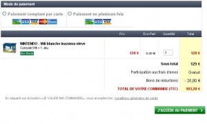 Ainsi la console wii inazuma eleven vendue normalement à 129€ passe donc à 103€  .. Avec la livraison offerte en point relais ..
