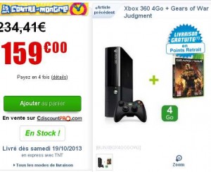Console Xbox360 4go + jeu Gear of war judgement à 159 euros