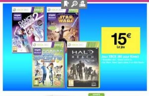 Si vous avez une console xbox360 avec le capteur kinect , bonne affaire dans les hyper carrefour pour s’acheter quelques bons jeux pour pas cher ..