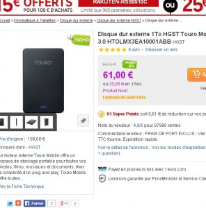 Ce disque dur est à 61 euros et passe donc à 55 euros …