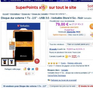 Autre bonne affaire sur priceminister le 20 février gràce au 15% de reversés sous forme de bons d’achats : Sur un disque dur externe 2.5 pouces 1to usb3 ..