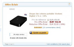 Si vous avez besoin d’un disque dur externe , l’offre presente sur amazon vous interessera peut etre : en effet un disque dur externe western digital de 1To est proposé à 104.90 euros port inclu au lieu de 159€