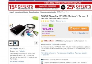 Bon plan pour un disque dur externe 2.5 pouces : 85 euros port inclus, un pack regroupant un disque dur 2to verbatim 2.5 pouces, usb3 et 3 clés usb 8go ….