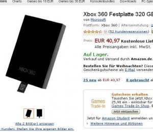 Si vous avez une console microsoft xbox360 4go slim .. tres bonne affaire pour vous pour ajouter un disque dur : sur amazon allemagne est vendu pour 40.97 euros le disque dur officiel de 320go avec en prime à télécharger le jeu Lego Star War 3 …