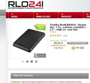 Si vous cherchez un disque dur externe , petit , rapide et avec pas mal de capacité, l’offre sur priceminister peut vous interesser : On y trouve en effet dans les superbonneaffaire de la semaine un disque dur Toshiba 1To , 2.5 pouces, USB3 à 99.99 euros port inclu ..