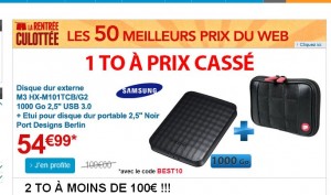 Tres bon prix pour un disque dur externe sur rueducommerce : 54.99 euros le disque dur Samsung M3 de 1to , usb3 , 2.5 pouces … Disque dur accompagné d’un étui de protection zippé …