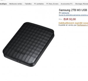 A la recherche d’un gros disque dur externe 2.5 pouces .. Tres bonne affaire encore sur amazon aupres du vendeur mymemory qui propose un disque de 2to usb3 2.5 pouces à 92 euros livraison incluse .. Un disque dur samsung M3.