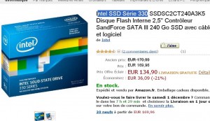 Bonne affaire du coté d’amazon dans les ventes eclair du 30 novembre : en effet il s’y trouve un disque flash intel serial ata 3 de 240 go pour 134.90 euros port inclu ..