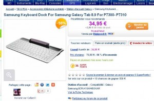Dock Clavier officiel Samsung pour galaxy tab 8.9 à moins de 38 euros port inclu