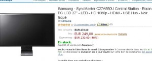 Ecran pc 27 pouces samsung syncmaster C27A550U à 249 euros contre autour de 350 euros ailleurs