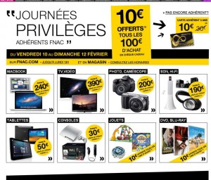 Fnac : 10 euros en bon d’achat par tranche de 100 pour les adherents du 10 au 12 fevrier
