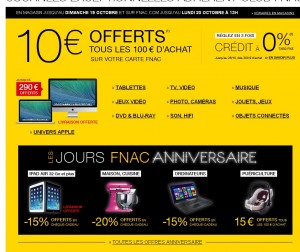 Nouvelles journées adherents sur le site de la fnac … Avec jusqu’au 20 octobre, 10 euros offerts en bons d’achats par tranche de 100 d’achats ..