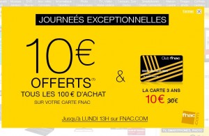 Nouvelles journées adherents sur le site de la fnac … Avec 10 euros en bons d’achats offerts par tranche de 100 euros d’achats … Jusqu’au 16 juin … Une offre reservée aux possesseurs de la carte adherent …