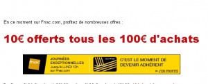 Fnac ! pour les adherents, 10 euros offerts par tranche de 100 jusqu’au 6 octobre