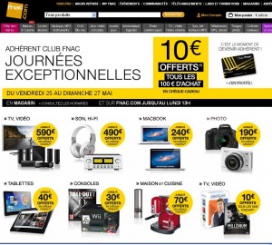 Si vous êtes adherents fnac et que vous avez reperé quelque chose qui vous plait sur le site ou en magasin, profitez des journées adherents jusqu’au 28 mai à 13 heures: en effet on obtient 10€ de bons d’achats par tranche de 100 d’achats ..