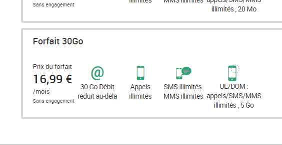 1.99€ par mois au lieu de 16.9€ le forfait illimité 30 go avec
