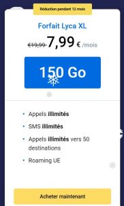 Durant 12 mois on peut beneficier du forfait LYCA XL pour 7.99€ par mois