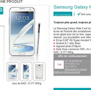 et samsung propose 70 euros de remboursement en différée pour l’achat de l’appareil d’ici le 30 novembre 2012