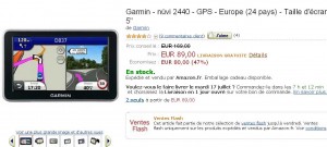Bonne affaire dans les ventes flash sur amazon, qui propose le garmin nuvi 2440 à 89 euros port inclu .. Gps avec écran 5 pouces et contenant les cartes de 24 pays (europe de l’ouest ) ..