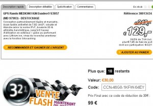 En effet le gps medion ing evadeo s3857 est en destockage à 129 euros, mais en plus en saisissant le code promo CCN-46G8-1KFW-64EY on gagne 30 euros de remise supplementaire ..