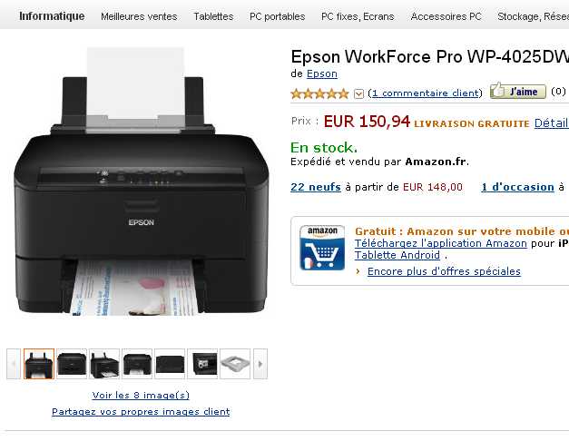 Cette imprimante semble se vendre ailleurs autour de 150 euros (sur amazon notamment )