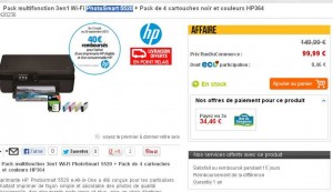 Ainsi Rueducommerce propose un pack Imprimante HP Photosmart 5520 + le pack de cartouche qui va avec pour 99.99 euros livraison incluse en point relais .. Un prix tres interessant quand on voit que l’imprimante seule se vend entre 80 et 120 euros ..