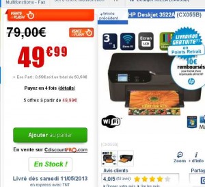 Si vous etes à la recherche d’une nouvelle imprimante , bonne affaire sur cdiscount : en effet la multifonction HP 3522A est proposée à 49.99 euros et en plus hp rembourse 10 euros en differée ..