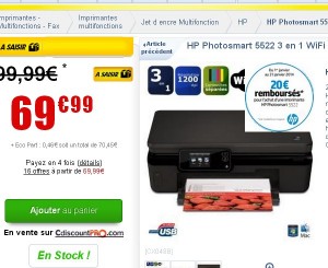La HP 5522 est vendue au meilleur prix sur cdiscount à 69 euros .. Et en plus il y a 20 euros de remboursement différé pour un achat d’ici le 31 janvier ..