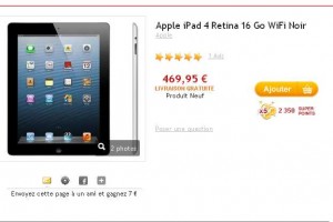 Ipad 4 16go wifi qui revient à 426 euros port inclu … le 21 novembre uniquement