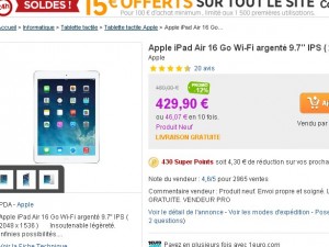 Ipad Air 16go wifi à 411 euros le 5 fevrier .. (au lieu d’autour de 490 )