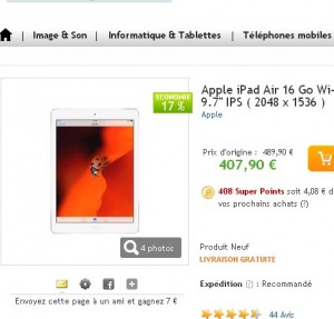 Ipad Air 16go wifi à moins de 408 euros port inclus