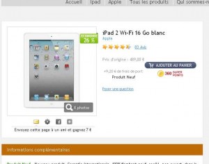 Cliquez ici pour voir l’ipad2 wifi 16go sur priceminister