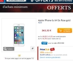 Vendu à 263.32€ l’iphone 6s 64go rose beneficie de 10€ de remise immediate en utilisant le code promo « JES10100 » et en plus de 25% de remboursé en superpoint priceminister ( bons d’achats )
