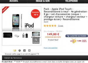 En effet, un vendeur pro propose un pack ipod touch 4 reconditionné comprenant l’appareil avec un chargeur voiture , secteur pour 149 euros port inclu ..