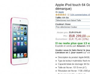 Dans les soldes sur amazon, il y aussi une bonne affaire sur l’ipod touch de derniere generation (la 5eme) dans sa version avec 64go d’espace de stockage ..