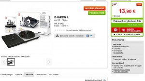 Envie de vous prendre pour Bob Sinclar, David Guetta où un autre DJ avec votre console de jeux ? Bonne affaire dans les soldes sur le site auchan.fr qui propose à 13.90 euros le jeu DJ HERO2 avec la platine disque pour console wii et à 15 euros pour les consoles PS3 et Xbox360 ..