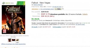 Les jeux videos qui datent de plus d’un an se trouvent à des prix tres variables suivant les boutiques : c’est ainsi le cas avec le jeu xbox360 Fallout New Vegas .. Ce jeu de role se trouve ainsi autour de 30 euros dans plusieurs boutiques (la fnac par exemple) mais seulement à 9.74 euros sur amazon ..