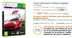 Jeu Forza4 pour xbox360 à 17.80 euros port inclu
