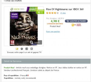 Envie de vous defouler pour pas cher en vous battant contre des zombies avec votre xbox kinect ? Bonne affaire sur priceminister avec le jeu rise of knightmare proposé à 4.98 euros seulement port inclu par le vendeur pro « game’s »