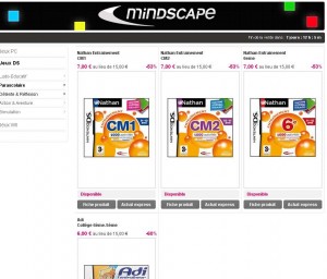 Avec notamment des éducatifs à moins de 10 euros pour DS : ( Nathan Entrainement CM1 , Cm2 , 6ème ,sont ainsi vendu 7 euros l’unité ), et Adi College 6eme-5eme seulement à 6 euros .