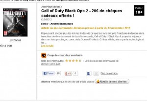 Jeux PS3 et XBOX360 Call of Duty Black Ops 2 à 59.9 euros mais avec 20 euros de bons d’achats offerts