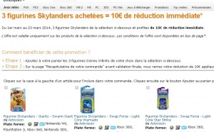 Vous jouez à la derniere version du jeu skylander , à savoir skylander swap force et il vous faut des figurines supplementaires ? Sur amazon il y a 10 euros de remise immediate pour l’achat de 3 personnages.. Cela peut faire une remise de pres d’un tiers du prix car on a des figurines à partir de 9 euros ..
