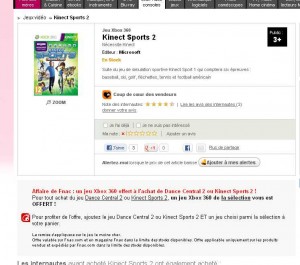 Pour cela il faut donc mettre dans son panier le jeu kinect sport 2 ou dance central 2 ainsi que le jeu que l’on désire en prime ..