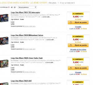 Une offre concernant les jouets lego stars wars sur le site de la fnac … On prend 3 boites, et on n’en paye que deux …