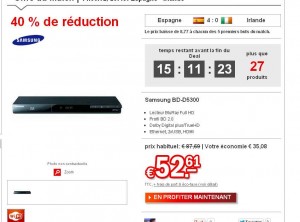 Bonne affaire sur redcoon concernant un lecteur blu ray .. le Samsung BD 5300 est à moins de 60 euros port inclu ( 52.61 + 6.99+0.3 = 59.60 euros  )